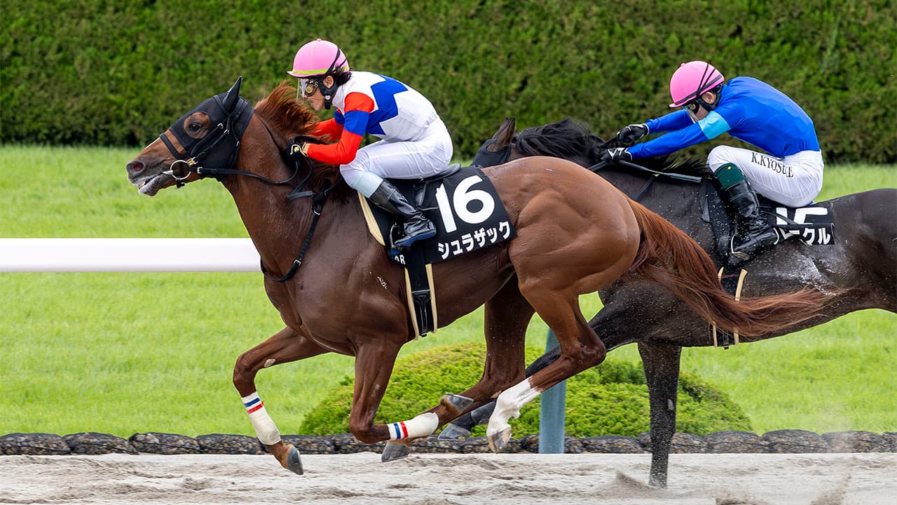 個人馬主の奥裕嗣オーナーは、大阪で不妊治療を専門に行うクリニック院長。所有馬はすべて大根田厩舎に預ける“完全一心同体”の関係で、これまで二人三脚で歩んできました。今週は阪神開催の最終週に勝負をかけ、コンビとして2頭出し。すでに土曜の阪神1Rではブロンテスが勝ち上がり、日曜の期待馬がこの⑯シュラザックです。